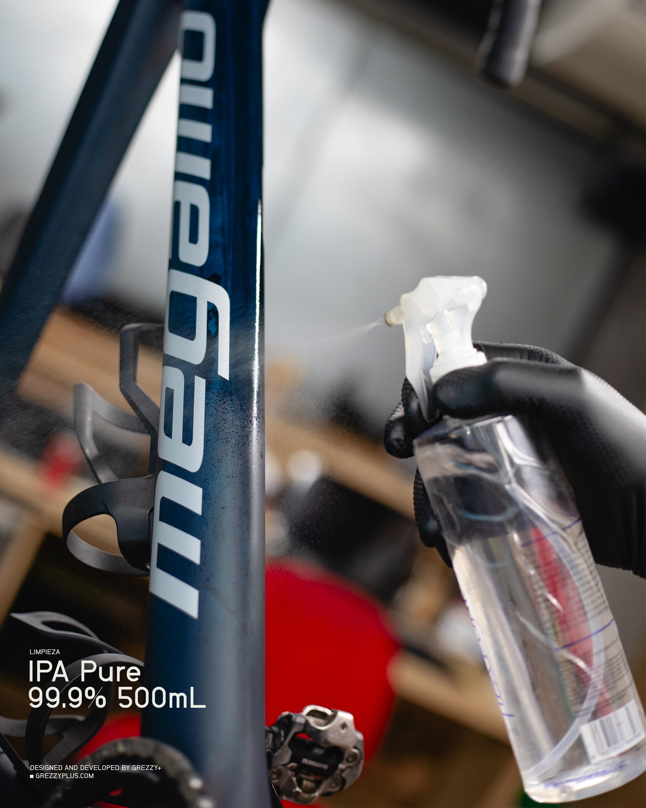 It is the solvent used par excellence for cleaning some mechanical parts, tools and work benches; cleaning and preparing surfaces to place vinyl, protections or any adhesive on bicycle frames or other surfaces; placing grips on handlebars; cleaning glue residue on rims or rims for the correct installation of tubeless or tubular rim tapes; cleaning electronic boards or battery contacts on e-bikes; safely cleaning controls, buttons and electronic gears. It can also be used to clean cycling glasses or any other type, camera lenses and lenses, electronic devices, electronic boards or cards, etc.