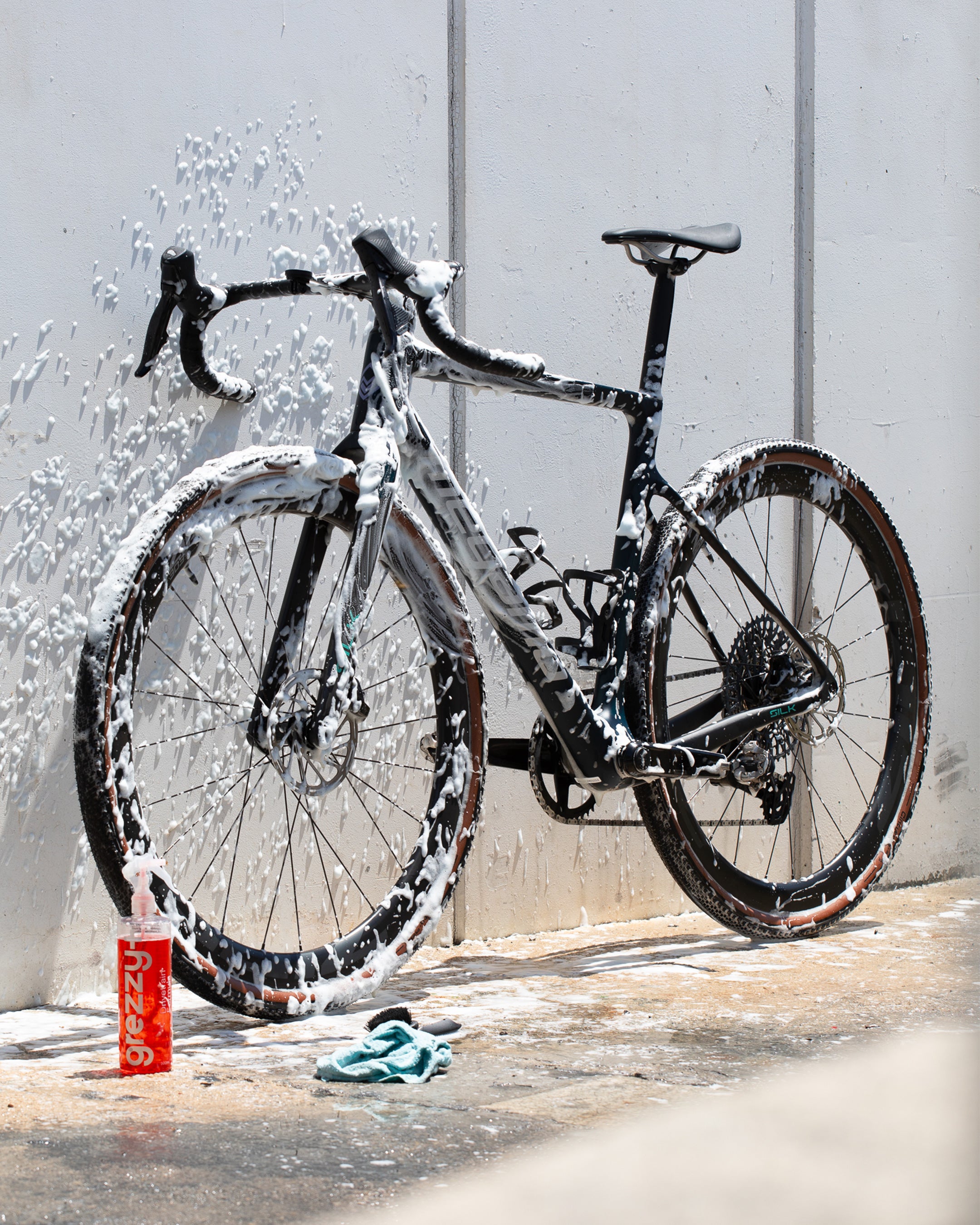 Elimina todo tipo de restos de suciedad en la bicicleta y periféricos. Gracias a su composición, forma una espuma activa que elimina todo tipo de suciedad, como, por ejemplo, barro, manchas o salpicaduras de lubricantes, restos de geles o bebidas energéticas, etc.