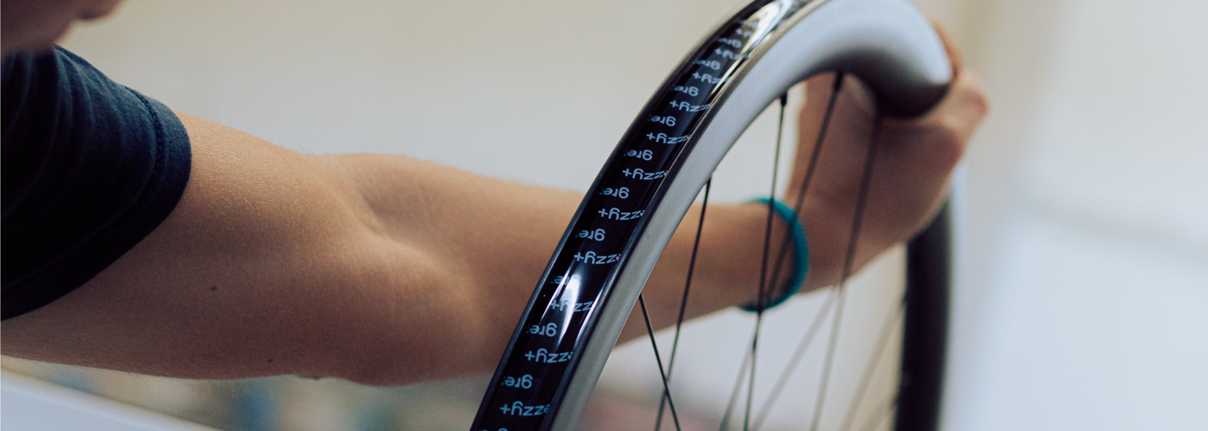A continuación, instala la cinta en la llanta pegando primero unos 15 cm y estirando la cinta hasta completar una vuelta, añadiendo unos 5 o 10 cm adicionales que pegarás sobre la primera vuelta. Es importante instalar la cinta manteniendo una alta tensión sobre ella, de esta manera ayudamos a que se adapte perfectamente a las formas de la llanta y pueda adherirse mejor.